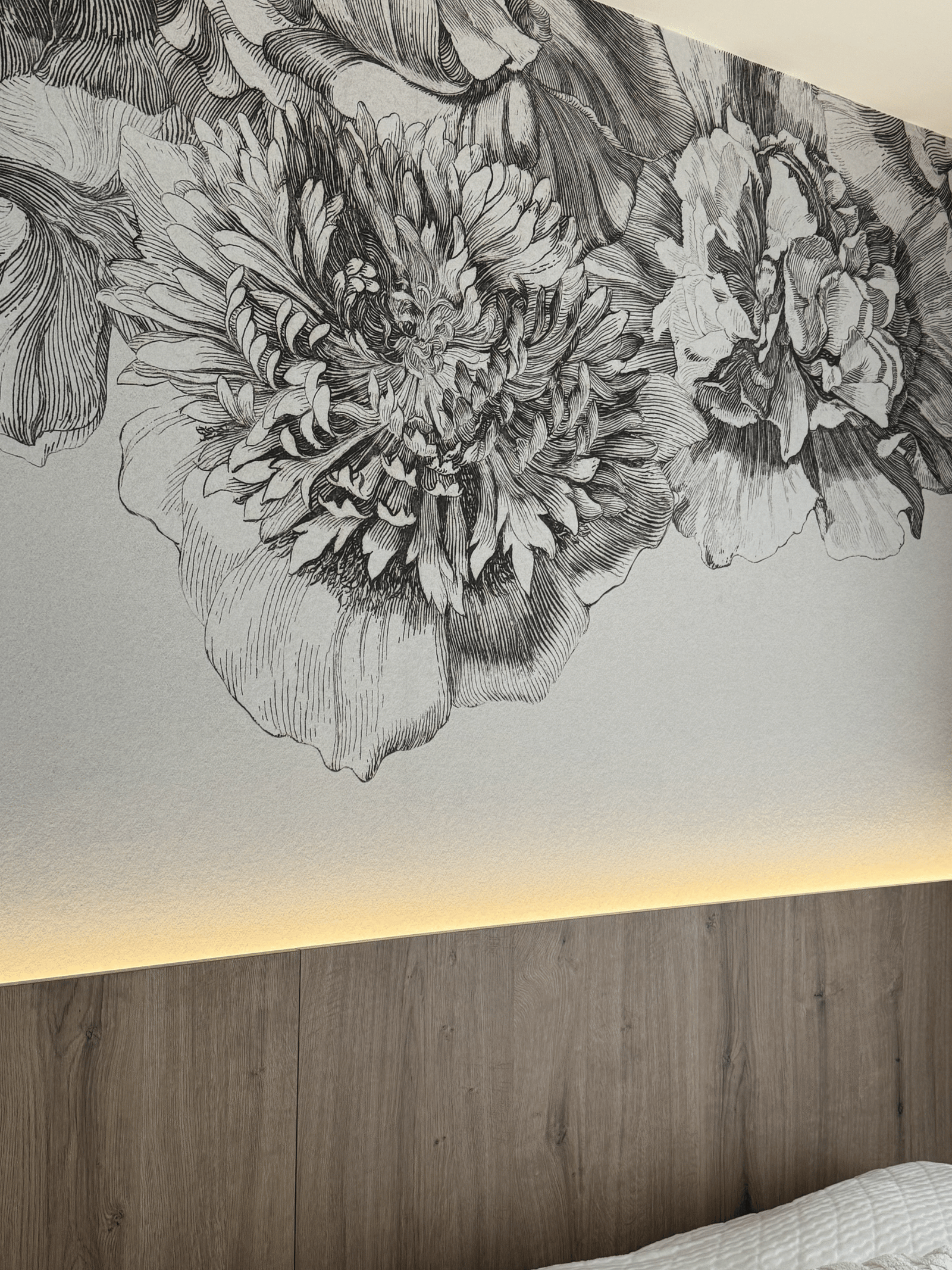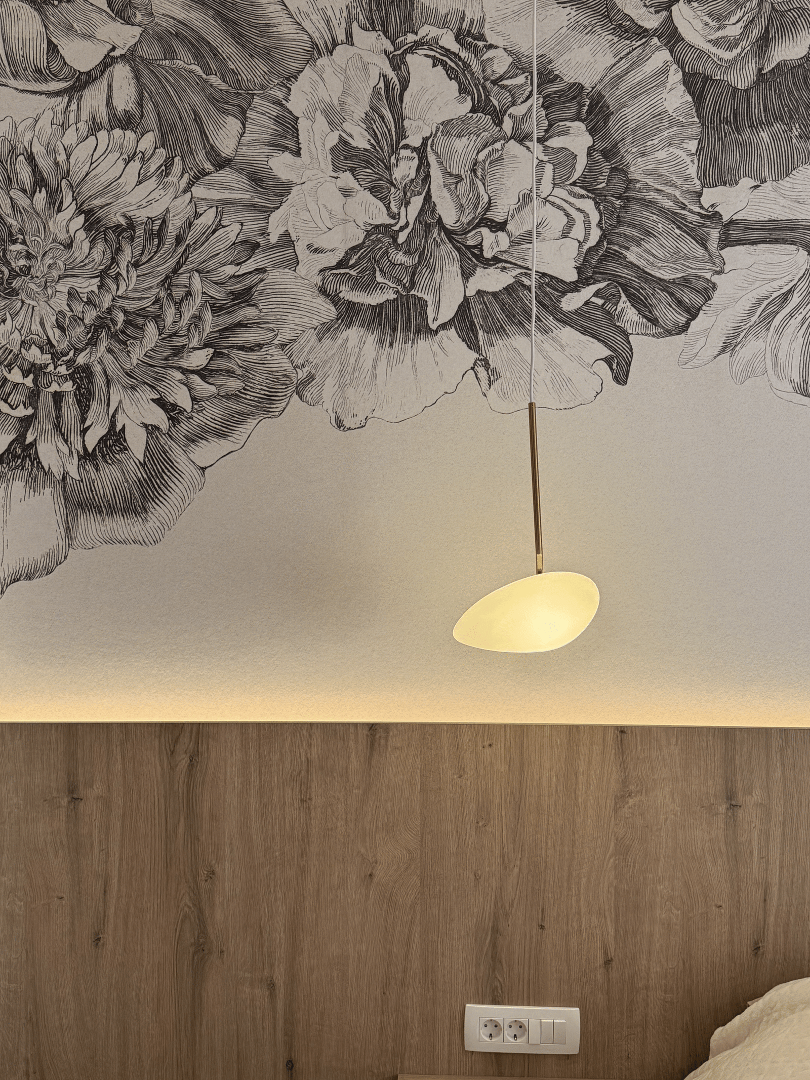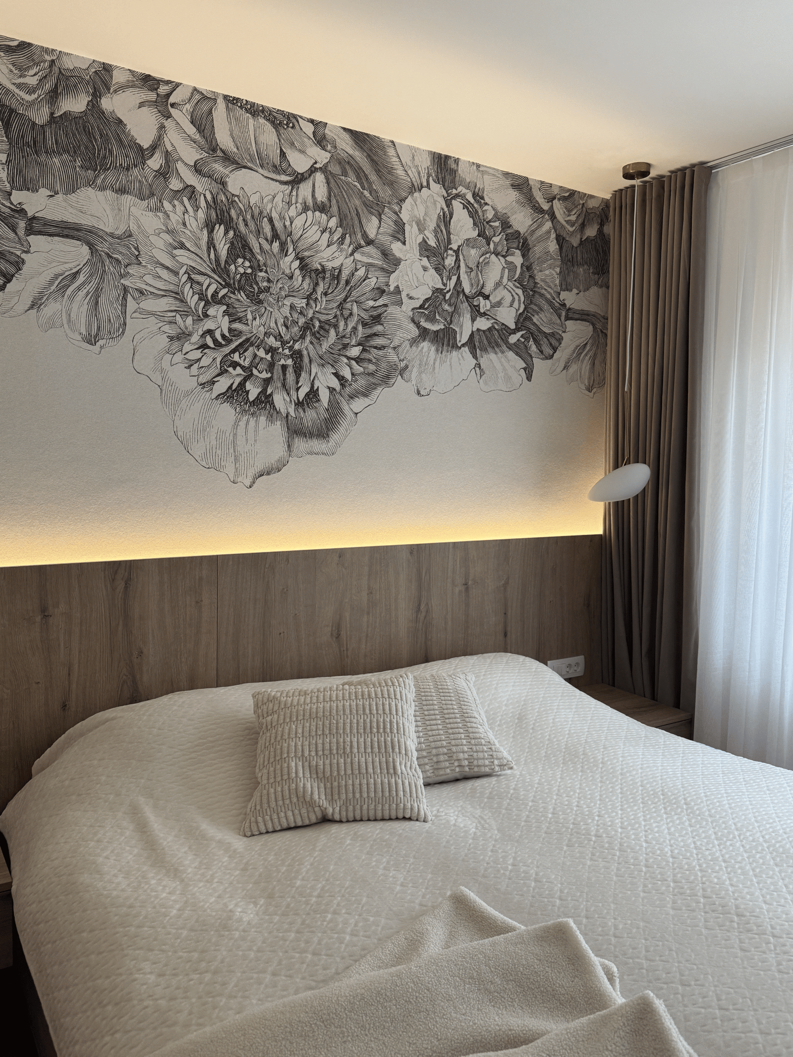 Bedroom designed with a character, not afraid of bold choices but still keeping a feminine touch.
